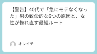 【警告】40代で「急にモテなくなった」男の致命的な6つの原因と、女性が惚れ直す最短ルート