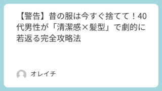 【警告】昔の服は今すぐ捨てて!40代男性が「清潔感×髪型」で劇的に若返る完全攻略法